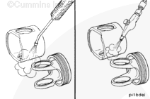 Use crack detection kit, Part Number 3375432 or equivalent, to check for cracks on the piston crown and in and around the piston pin bore. Do not