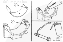Lubricate the bearing shell with Lubriplate® 105, or equivalent. Lubricate the connecting rod capscrew threads and the washer face with 15W-40 lubricating oil.