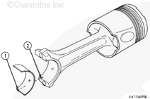 NOTE: The tang (1) of the bearing shell must be in the slot (2) of the rod.