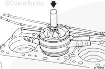 Do not use a hammer or its equivalent to install the piston into the cylinder liner. The piston rings can be damaged.