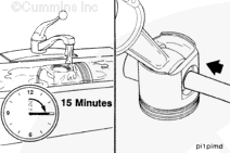 If the piston pin can not be removed at room temperature, it is acceptable to put the piston in 66°C [151°F] water for 15 to 30 minutes, then manually remove the piston pin with a blunt tool.