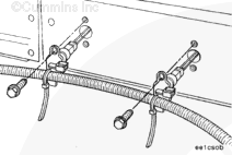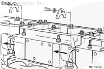 Remove the water manifold tube clamps. Use jumper tube removal tool, Part Number 3823819, to push or pry the adjacent water tubes into the rocker lever housing cavity.