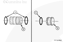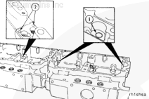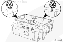 Install the water tubes (A) in the front of the Number 2 and Number 3 rocker lever housings. Install the plugs (B) in the front to the Number 1 rocker lever housing and in the rear of the Number 3 rocker lever housing.