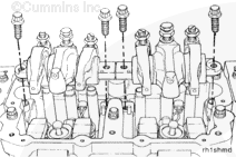 If the adjusting screws protrude beyond the maximum listed below, the push rods can be damaged when the housing capscrews are tightened. Do not attempt to install the rocker lever shaft assemblies again without resetting the lash.
