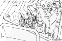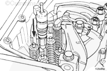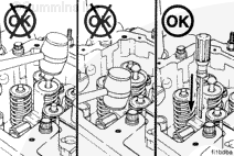 After partial installation of the injector, take precautions to center the solenoid valve between the valve springs. Avoid contact with the spring coils. If the injector is contacting a valve spring, use a screwdriver to position the injector again.