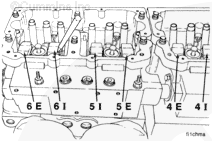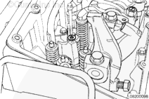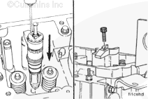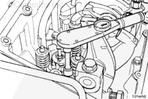 Loosen the locknut and turn out the adjusting screw on each injector and valve rocker lever.