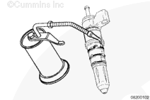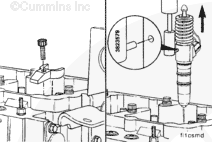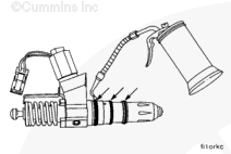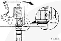 If an injector puller/installer, Part Number 3823579, is not available, a screwdriver can be used to install the injector by putting the screwdriver on the injector body at the base of the injector solenoid and striking the screwdriver with a soft mallet. Do not strike on the injector solenoid or on the top stop spring cage.
