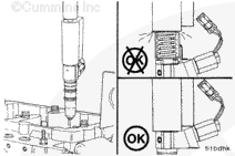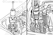 Make sure to place the instrument used to install the injectors on the top cap of the injector, not on the plunger or link. The plungers will be damaged.