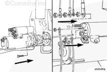 Make sure to use the same thickness of starting motor spacer (if used) as the one removed to install the starting motor to prevent engine or starting motor damage.